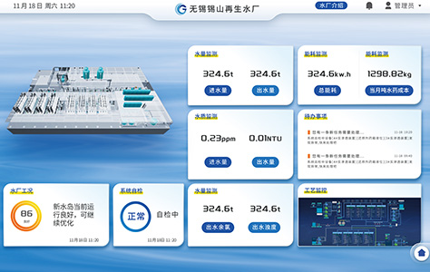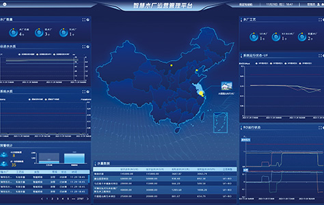 The water plant cockpit is a real-time data display platform that monitors process conditions and operation indicators, comprehensively displays the operation outcome. The information displayed in each module can be customized according to demands.